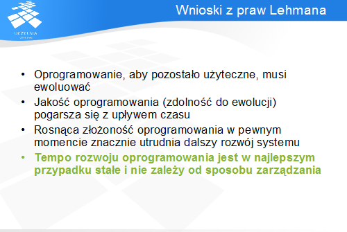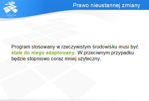 Jeżeli dążenie do zmian zostanie w pewien sposób zahamowane, wówczas w miarę upływu czasu oprogramowanie będzie w coraz mniejszym stopniu odpowiadało potrzebom środowiska, a co za tym idzie - postrzegane jako coraz mniej użyteczne.