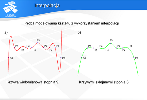 Wydawać by się mogło, że najprostszą forma modelowania krzywej jest wskazanie zbioru punktów na niej leżących a następnie połączenie ich krzywą interpolującą – najprościej wielomianową. Jeżeli dany jest ciąg parami różnych liczb