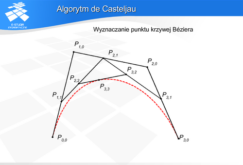 Algorytm de Casteljau wyznaczania punktu leżącego na krzywej Béziera na podstawie ciągu punktów kontrolnych