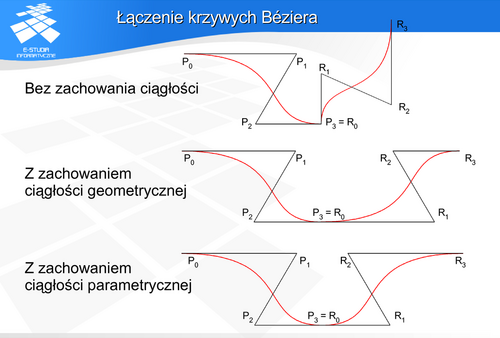 są współliniowe mówimy o ciągłości geometrycznej G1 krzywej (rysunek a). Jeżeli punkty