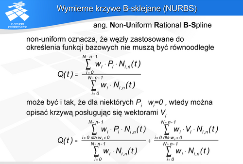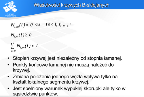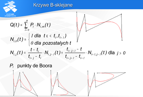 o współczynnikach odpowiadających punktom kontrolnym (punktom de Boora). Funkcje sklejane są przedziałami stopnia