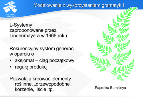 Paprotka Barnsleya jest chyba najbardziej znanym przykładem wykorzystania gramatyk do modelowania roślin.