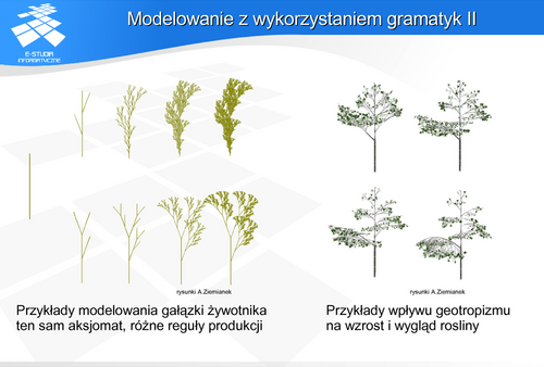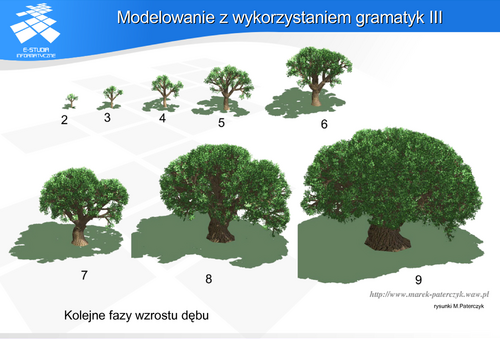 Warto zwrócić uwagę na sposób realizacji wzrostu. Naturalny wzrost rzeczywistych roślin jest procesem ciągłym; płynnym. Natomiast symulacja z wykorzystaniem gramatyk jest procesem „skokowym” – realizowane są określone stany odpowiadające kolejnym iteracjom. Prezentowane rysunki pokazują stany wzrostu drzewa w określonych iteracjach. Liczby pod drzewami pokazują liczbę użytych iteracji.