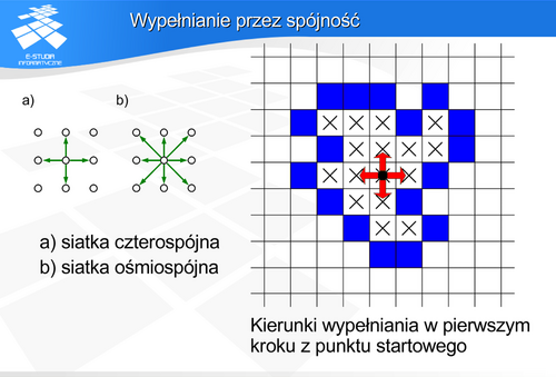 Algorytm wypełniania przez spójność dla siatki czterospójnej.