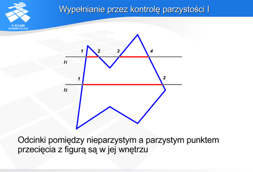 Opisany algorytm należy w zależności od potrzeb uzupełnić o analizę samego wielokąta (przynależność lub nie do odpowiednich odcinków co jest zabiegiem technicznym i nie stanowi problemu).