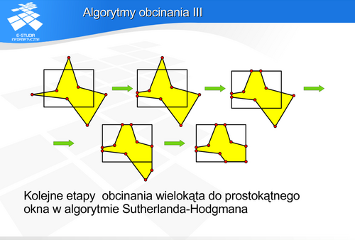 Przykładem algorytmu rozwiązującego ten problem jest algorytm Sutherlanda-Hodgmana obcinania wielokąta.