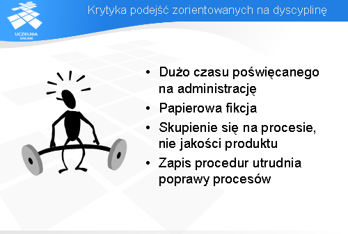 Ostatni argument przeciwko zorientowaniu na dyscyplinę - opracowane procedury zabijają inicjatywę i elastyczność.