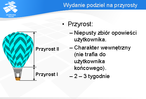 Cykl życia w XP wygląda zatem następująco: mamy wydania podzielone na przyrosty.