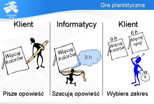 Po pierwsze - przedstawiciel klienta jest ciągłym źródłem wymagań. Wymagania są przedyskutowywane z nim na bieżąco, natomiast ślad z tych dyskusji jest przechowywany w formie opowieści użytkowników.