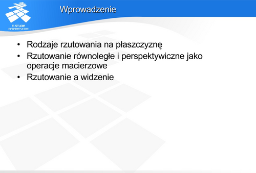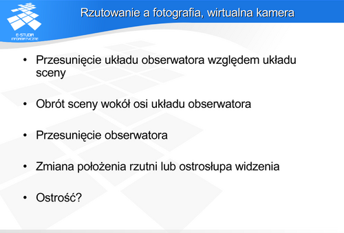 Niech obserwator (środek rzutowania) znajduje się w punkcie