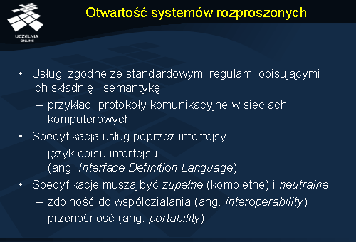 Warstwa pośrednia powinna ukrywać fakt heterogeniczności systemów składowych. Dzieje się to poprzez definicje nowych interfejsów komunikacyjnych, niezależnych od interfejsów lokalnych systemów operacyjnych. Aplikacje rozproszone powinny posługiwać się tylko tymi interfejsami i nie powinny korzystać bezpośrednio z usług lokalnego systemu operacyjnego.