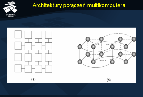 Praktyczne realizacje koncepcji multikomputera korzystają bądź ze specjalizowanej (często opatentowanej) sieci połączeń, bądź ze standardowych rozwiązań stosowanych w sieciach komputerowych (np. technologia Ethernet). Pierwsze podejście, oczywiście dużo droższe, stosowane jest w komputerach o masywnej równoległości. Multikomputery bazujące na standardowych technologiach zwane są z kolei gronami, grupami stacji roboczych lub po prostu klastrami.
