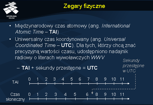 Dopóki zegar jest używany lokalnie na jednej maszynie kwestia jego niedokładności nie jest aż taka istotna. Procesy korzystają w tym wypadku z jednego zegara, a więc w ramach danej maszyny jego wskazania będą spójne. Problem pojawia się gdy dostępnych mamy kilka maszyn, z których każda posiada swój własny zegar. Ponieważ fizyczne zegary nie są idealne i ich częstotliwości będą się w jakimś stopniu różniły, po pewnym czasie zaczną wskazywać różne wartości. Innymi słowy pojawią się tzw. odchylenia wskazań zegara (ang. clock skew ). W takim przypadku założenie, że zegary fizyczne w danym momencie wskazują identyczny czas jest obarczone pewnym błędem.