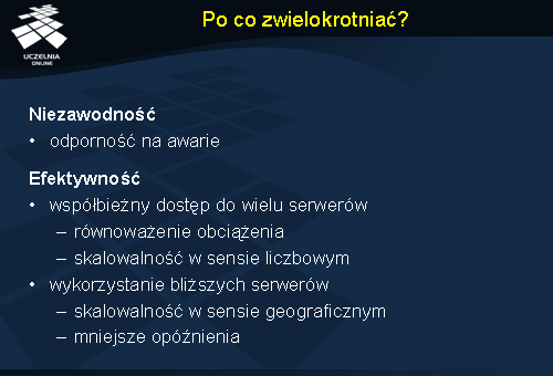 Zwiększanie efektywności przetwarzania może być rozpatrywane w dwóch kontekstach. Przy wzrastającej liczbie żądań pojedynczy serwer może być niewystarczający. Należy w takiej sytuacji system skalować w sensie liczbowym, wprowadzając serwery-repliki. Umożliwi to współbieżne wykorzystanie mocy obliczeniowych tych jednostek przez wielu klientów. Oczywiście należy zadbać, aby w miarę możliwości obciążenie serwerów było równomierne.