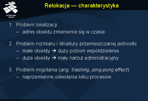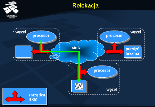Drugie rozwiązanie próbuje zaradzić sytuacji, gdy do obiektu odwołuje się bardzo często pojedynczy proces lub grupa procesów zlokalizowanych na innym komputerze niż sam obiekt. Jeżeli założymy, że możliwa jest zmiana fizycznej lokalizacji współdzielonego obiektu (relokacja ), czyli umieszczenie go w pamięci lokalnej węzła, w którym pojawiło się żądanie dostępu, to potencjalnie możemy znacząco skrócić czas kolejnych dostępów do tych danych. Podejście to będzie opłacalne w przypadku aplikacji, w których występują zgrupowane, seryjne odwołania do obiektów z pojedynczych węzłów. W takiej sytuacji opłacalne będzie ponoszenie kosztów przenoszenia (potencjalnie dużego) obiektu między węzłami.