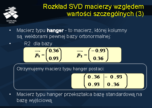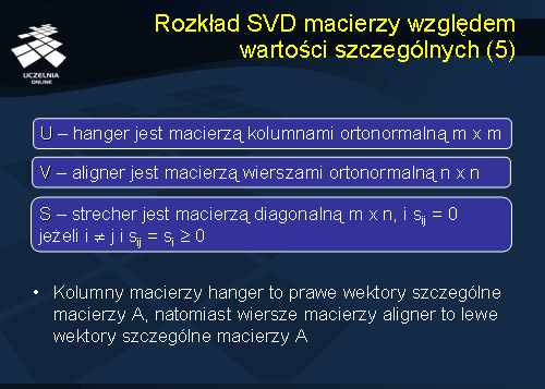 Po wprowadzeniu macierzy aligner, hanger i strecher możemy obecnie wprowadzić pojęcie rozkładu macierzy A względem wartości szczególnych.