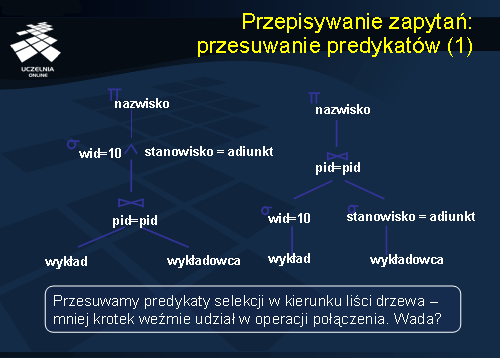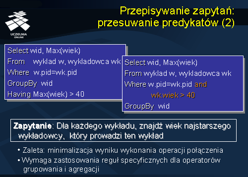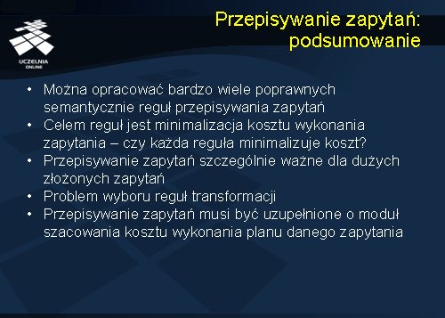 Do kwestii opłacalności mechanizmu przepisywania zapytań (transformacji zapytań) wrócimy jeszcze w dalszej części wykładu.