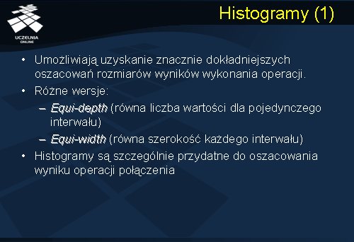 Histogramy umożliwiają uzyskanie znacznie dokładniejszych oszacowań rozmiarów wyników wykonania operacji. Histogramy występują w różnych wersjach:
