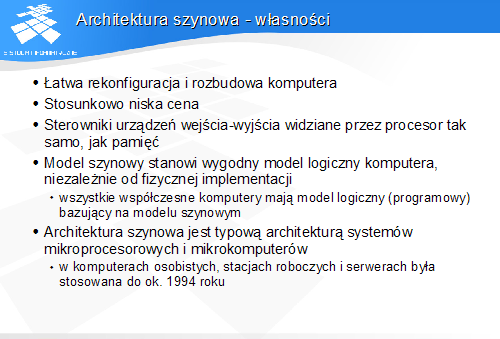 Współczesne komputery, pomimo, że ich fizyczna budowa jest dużo bardziej złożona, od strony logicznej zachowują się tak, jak gdyby miały strukturę szynową.