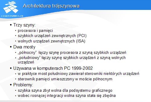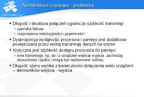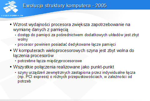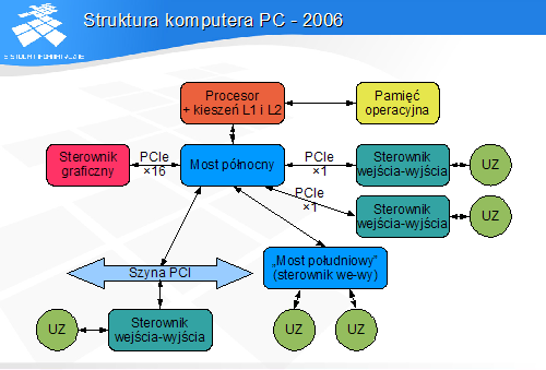 W przedstawionej strukturze nie ma już szyny wolnych urządzeń wejścia-wyjścia, a część połączeń szynowych została zastąpiona połączeniami typu punkt-punkt, o dużo większej przepustowości.