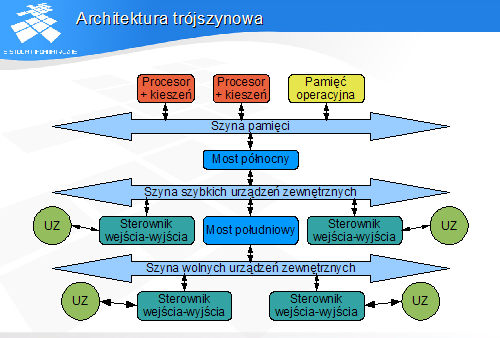 W architekturze trójszynowej, stosowanej w komputerach PC w drugiej połowie lat 90-tych XX wieku, istnieją dwie szyny urządzeń zewnętrznych – szybka i wolna.