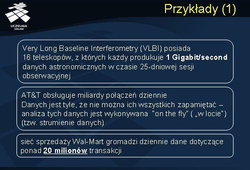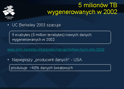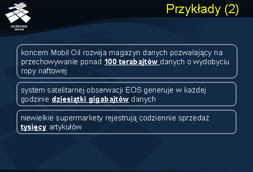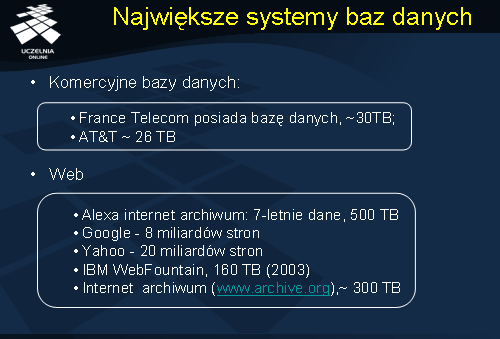 Rozwój sieci Web spowodował, iż stał się on olbrzymią bazą danych przechowującą tera bajty danych. Przykładowo, Alexa internet archiwum: 7-letnie dane, 500 TB, Google - 8 miliardów stron, Yahoo - 20 miliardów stron , IBM WebFountain, 160 TB (2003), Internet archiwum (www.archive.org),~ 300 TB;