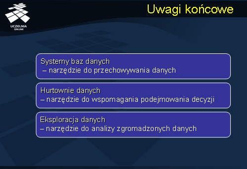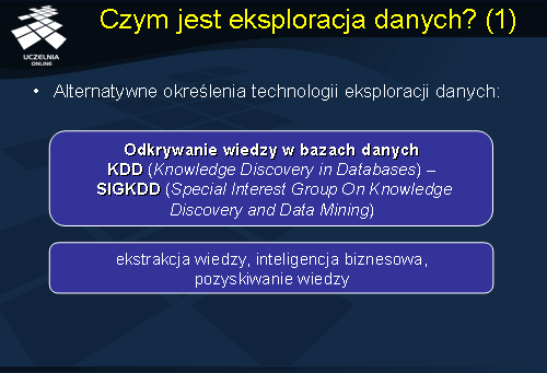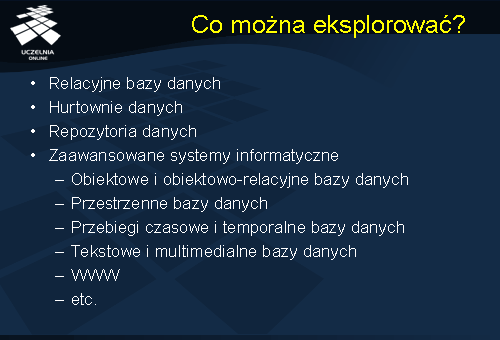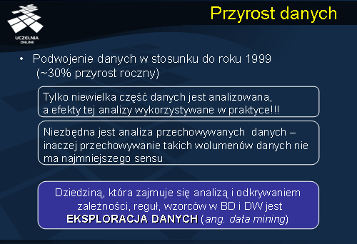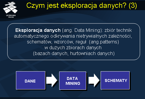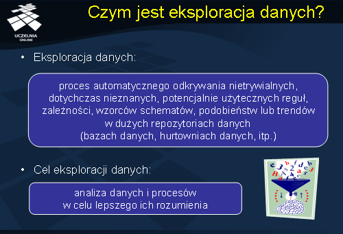 Odpowiedzią na potrzebę bardziej zaawansowanej i automatycznej analizy danych przechowywanych w bazach i hutrowniach danych jest technologia Eksploracji Danych (ang. Data Mining).
