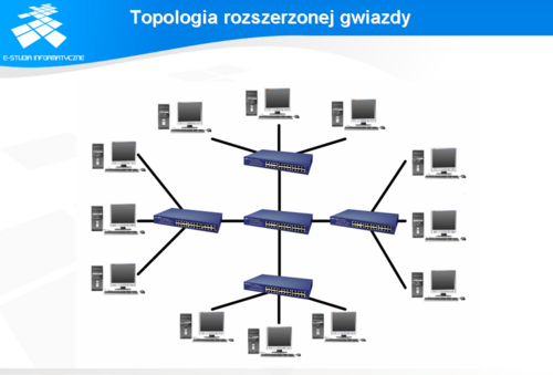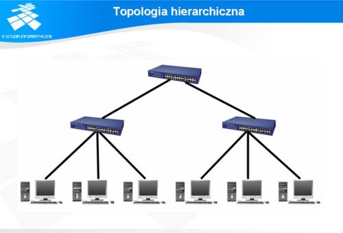 Topologia ta stosowana jest głównie w przypadku rozbudowanych sieci lokalnych oraz sieci kampusowych.
