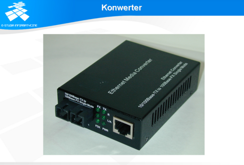 skrętka/światłowód, kabel koncentryczny/skrętka, kabel koncentryczny/światłowód, złącze AUI/(skrętka albo kabel koncentryczny, albo światłowód). Mediakonwertery stosowane są najczęściej do łączenia dwóch odległych urządzeń za pomocą linii światłowodowych.