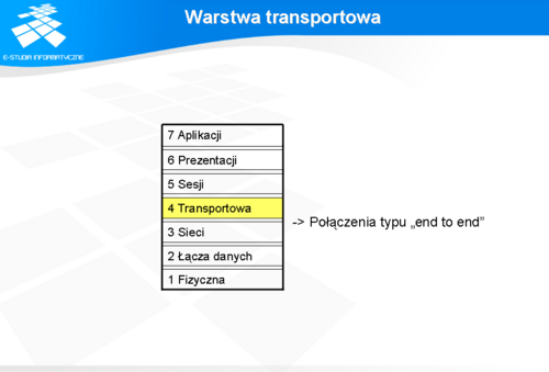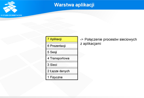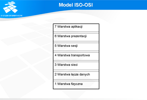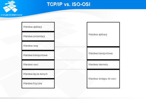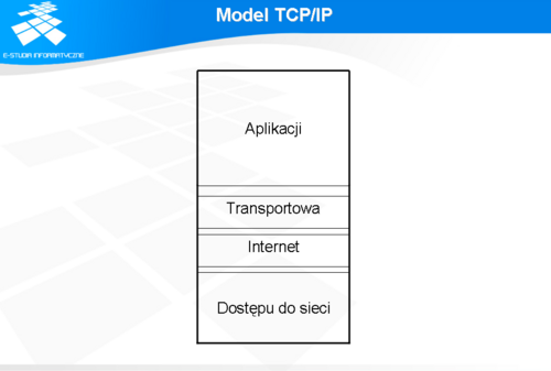 warstwy dostępu do sieci, warstwy internetu, warstwy transportowej, warstwy aplikacji. Ze względu na dużą różnorodność rozwiązań w zakresie fizycznej konstrukcji sieci, jaka istniała w chwili opracowywania, model TCP/IP zapewnia interfejs do warstwy dostępu do sieci traktując ją jako monolit. Warstwa ta odpowiada dwóm najniższym warstwom, fizycznej oraz łącza danych modelu ISO/OSI. Warstwa internetu odpowiada warstwie sieci w pełnym zakresie funkcjonalności. Warstwa transportowa modelu TCP/IP realizuje te same zadania, co warstwa transportowa modelu ISO/OSI oraz dodatkowo zajmuje się podstawowymi aspektami związanymi z zarządzaniem sesjami aplikacyjnymi. Pozostałe zadania warstwy sesji modelu ISO/OSI oraz zadania warstwy prezentacji i aplikacji zostały umieszczone w modelu TCP/IP w warstwie aplikacji. Obecnie rodzina protokołów TCP/IP jest podstawowym modelem komunikacji w Internecie i zdecydowanej większości lokalnych sieci komputerowych nie podpiętych do Internetu.