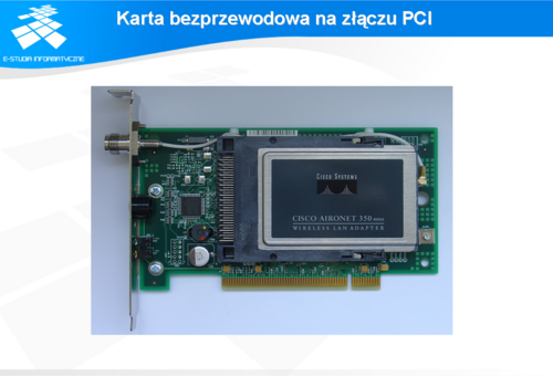 Karty do sieci bezprzewodowych stosowane w komputerach stacjonarnych konstruowane są na bazie kart wewnętrznych ze złączem PCMCIA. Obwód drukowany wraz z innymi elementami elektronicznymi pełni rolę adaptera między złączem PCMCIA, a złączem PCI. Dodatkowo karty dla komputerów stacjonarnych mają wyprowadzone złącze do podłączenia anteny zewnętrznej.