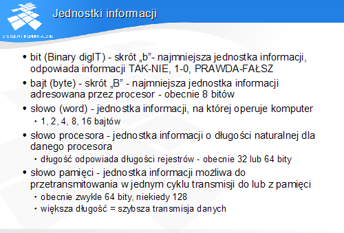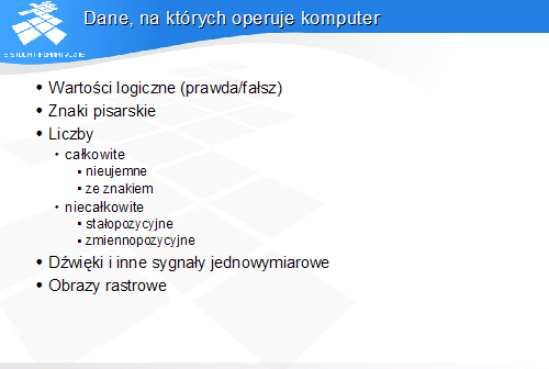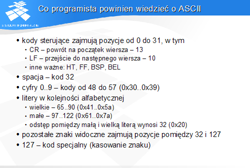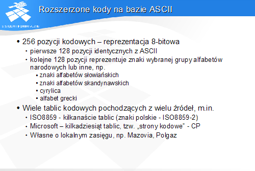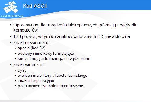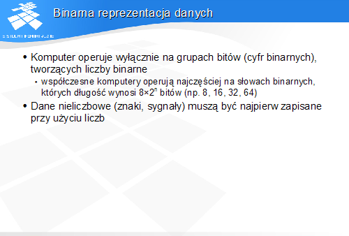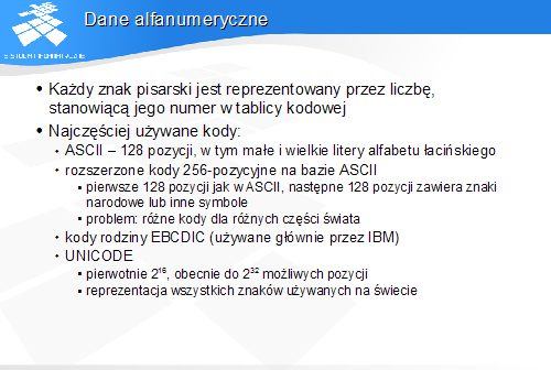 Wszelkie dane o charakterze nieliczbowym muszą być zapisane (zakodowane) w postaci liczb lub grup liczb.