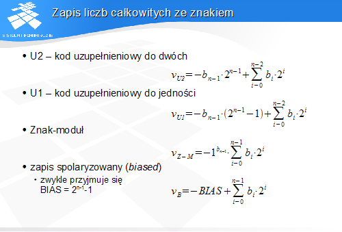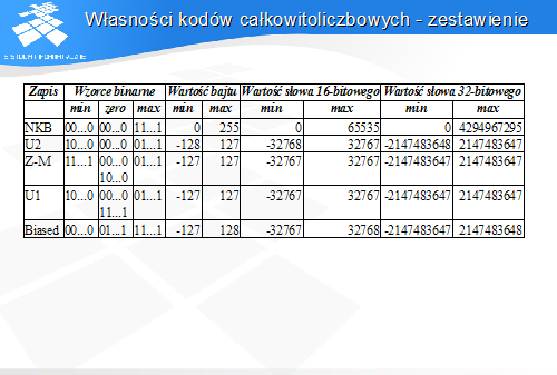 Ekran przedstawia kilka najważniejszych zapisów liczb ze znakiem.