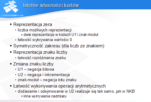 Reprezentacja zera – wpływa na łatwość wykrywania wartości 0 przy użyciu prostego układu logicznego.