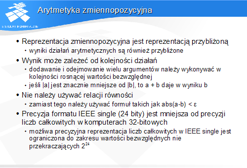 Posługując się liczbami zmiennpozycyjnymi należy pamiętać o ich specyficznych własnościach.