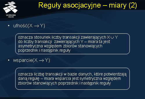 Reguły asocjacyjne - miary