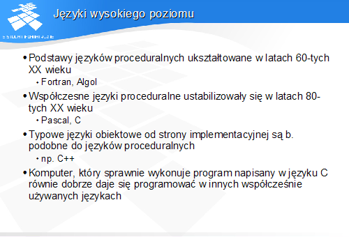Wkrótce po upowszechnieniu komputerów ustabilizowały się metody ich programowania. Obecnie powszechnie używa się języków wysokiego poziomu - proceduralnych i obiektowych. Współczesne komputery są budowane z myślą o programowaniu ich w takich właśnie językach, a ich struktura logiczna jest zaprojektowana tak, aby mogły one łatwo i wydajnie wykonywać programy powstałe przez translację zapisu algorytmów w językach wysokiego poziomu.