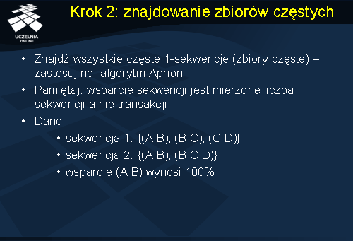 Krok 4 – sekwencjonowanie. Znajdujemy wszystkie częste sekwencje.
