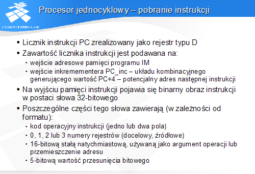 Procesor jednocyklowy - pobranie instrukcji