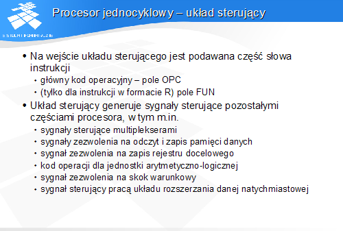 Procesor jednocyklowy - układ sterujący