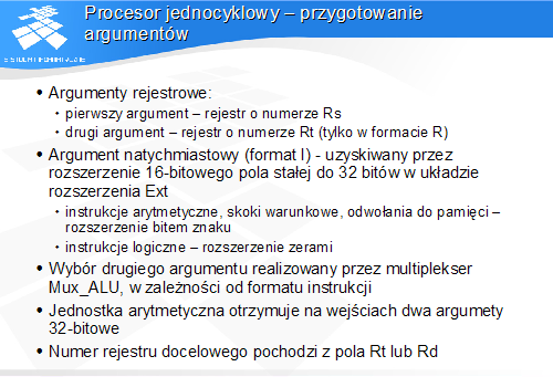 Procesor jednocyklowy - przygotowanie argumentów