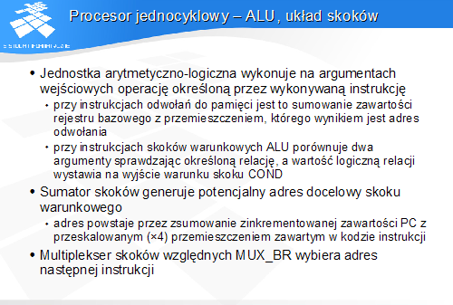 Procesor jednocyklowy - ALU, układ skoków
