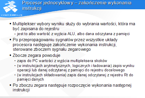 Praca procesora jednocyklowego