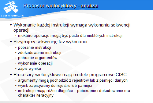 Implikuje to konieczność rozbicia wykonania instrukcji na kilka faz - cykli