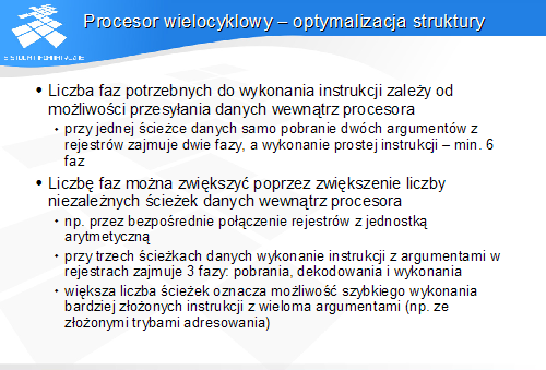 Procesor wielocyklowy - optymalizacja struktury
