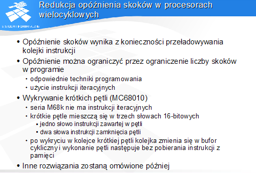 Niemożność pominięcia fazy pobrania po wykonaniu skoku oznacza, że instrukcja skoku wykonuje się dłużej, niż instrukcje nie modyfikujące PC