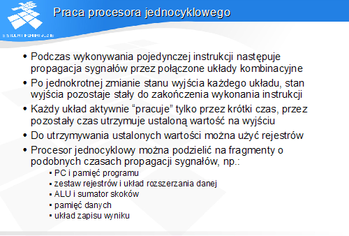 Podczas wykonywania pojedynczej instrukcji następuje propagacja sygnałów przez połączone układy kombinacyjne