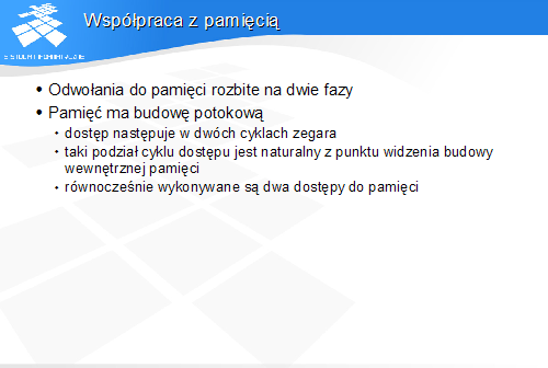 Stopień MEM dokonuje wymiany danych z hierarchią pamięci danych.