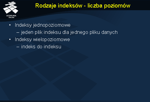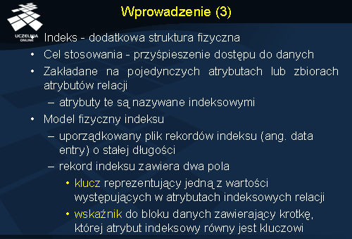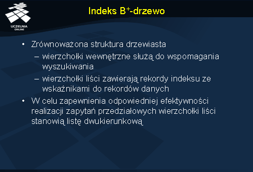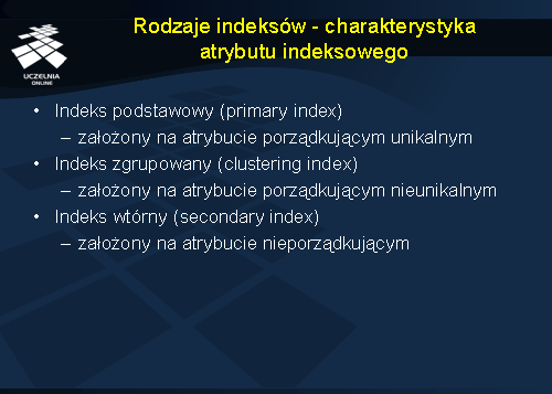 - charakterystyka różnego rodzaju indeksów (podstawowy, zgrupowany, wtórny, rzadki i gęsty),