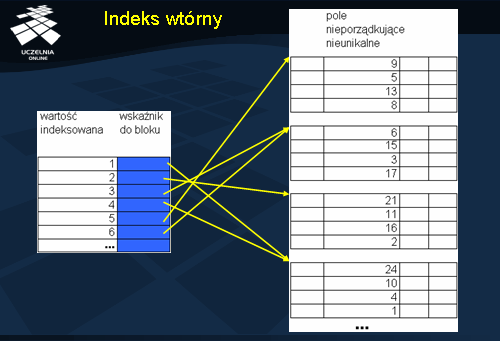 Indeks wtórny jest zakładany na atrybucie, który nie jest atrybutem porządkującym pliku.
